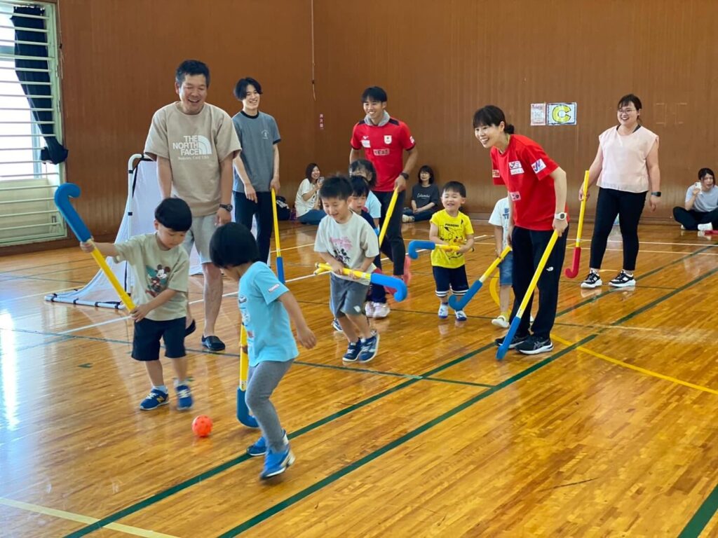 内容:オリンピック競技「ホッケー」(芝で行うフィールド競技)を体験しよう!安全な用具で初心者や小さな子どもも安心。スティックを持ってドリブルやシュートに挑戦し、最後はミニゲームで親子一緒に大盛り上がり!