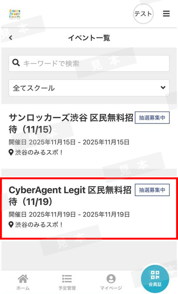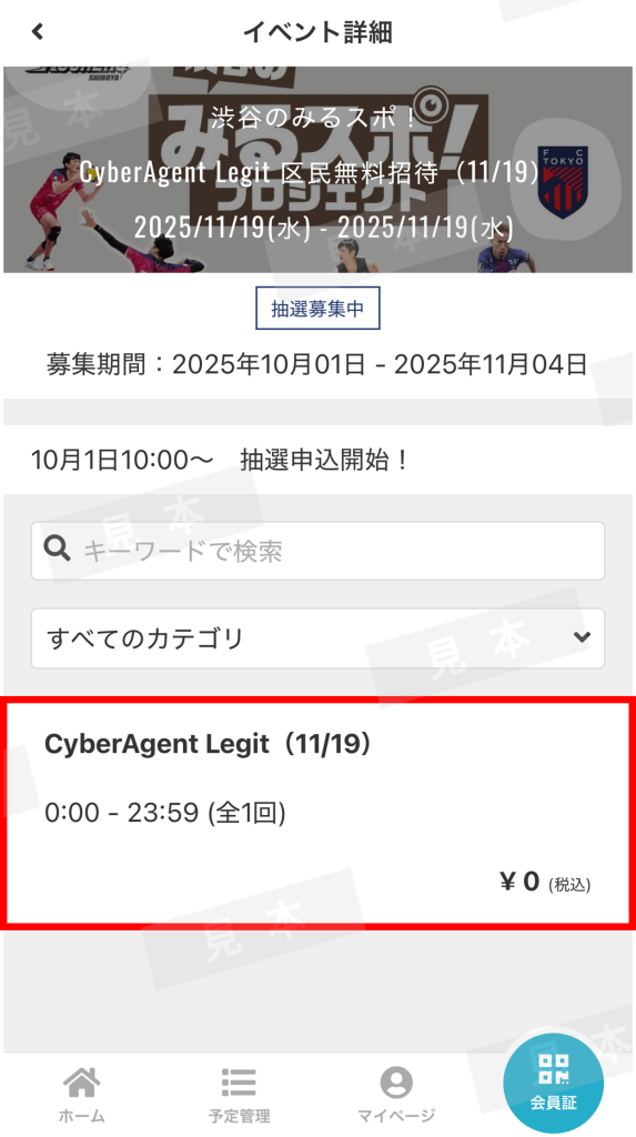 「CyberAgent Legit 区民無料招待(11/19)」を選択します。