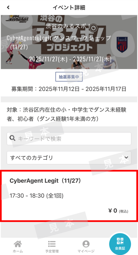 「CyberAgent Legit ダンスワークショップ(11/27)」を選択します。