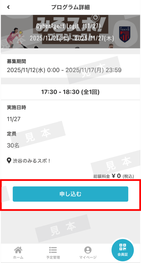 選択した内容に間違いがなければ「申し込む」を押します。