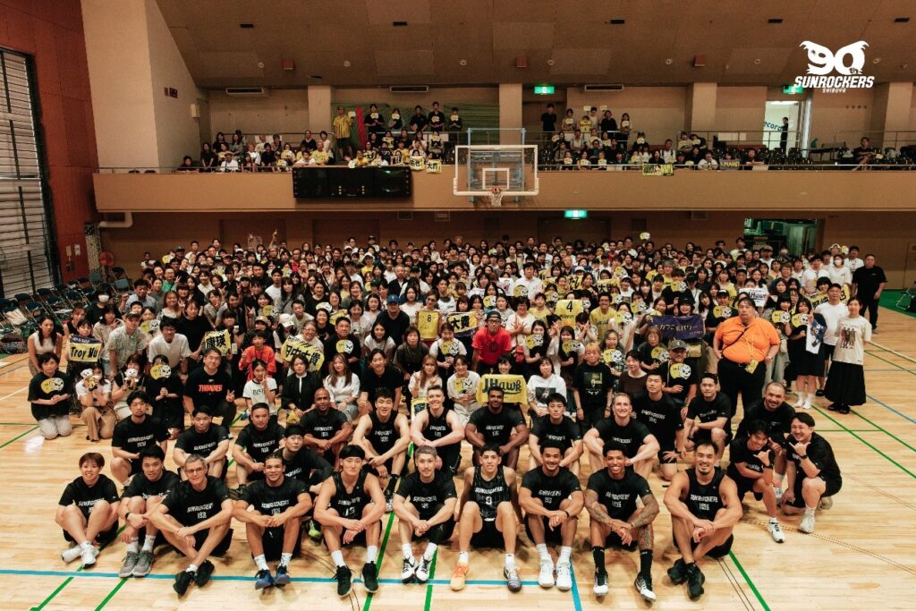 そんなホーキンソン選手をはじめ、日本代表として活躍する206cmの狩野富成選手、22歳で8月のアジアカップでも活躍したジャン・ローレンス・ハーパージュニア選手、東京2020夏季オリンピックに出場した、もう一人のSR渋谷キャプテン・ベンドラメ礼生選手や田中大貴選手など、国内トップクラスの選手が揃うSR渋谷。その公開練習が、区民の憩いの場であり、区民とともに歴史を歩んできた“街の体育館”で行われるとあって、当日はサンロッカーズファミリー(サンロッカーズ渋谷ファンの総称)が450人以上詰めかけました。