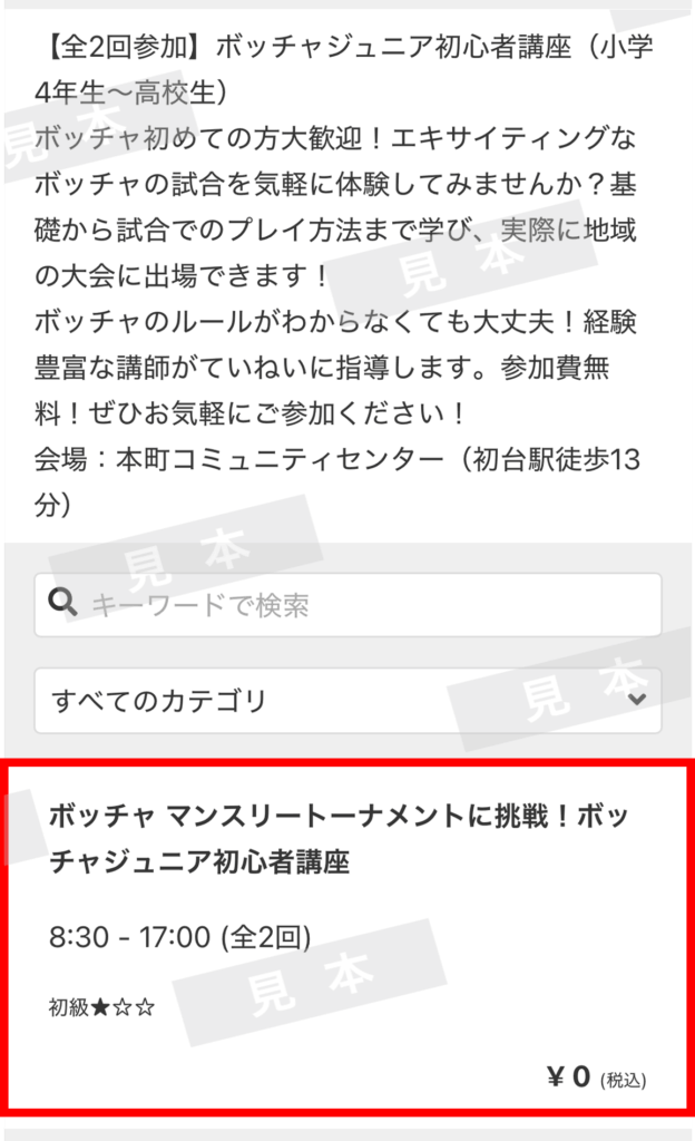 「ボッチャジュニア初心者講座(2/11、2/15より全2回)」を選択します。