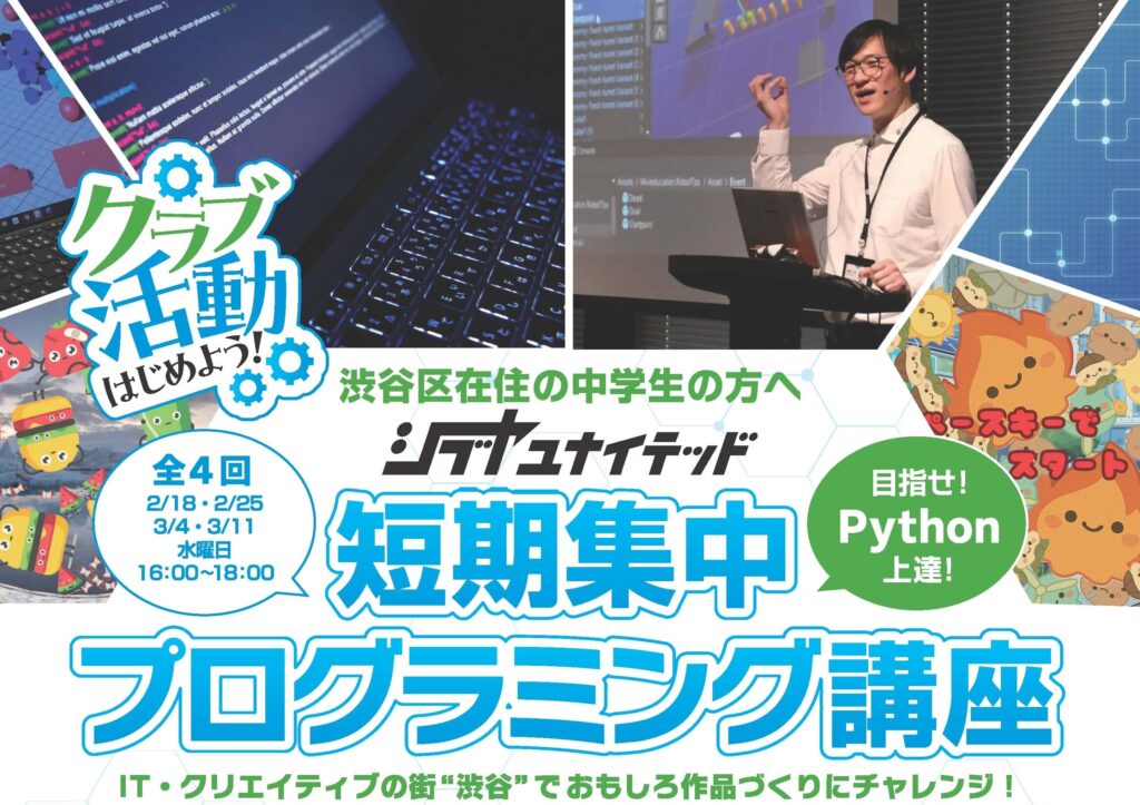 渋谷区の技術科ではMIXI Python学習アプリを使ったプログラミング指導を少しだけ行いますが、さらに訓練して作品制作まで進める機会はここです。