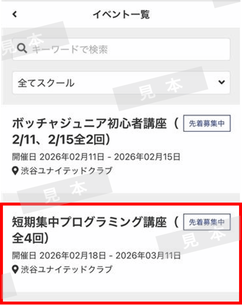「短期集中プログラミング講座(全4回)」を選択します。