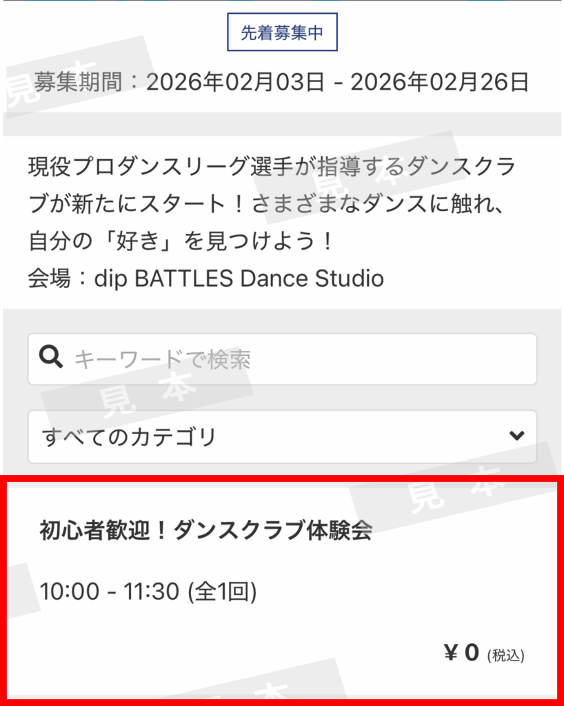 「初心者歓迎!ダンスクラブ体験会」を選択します。